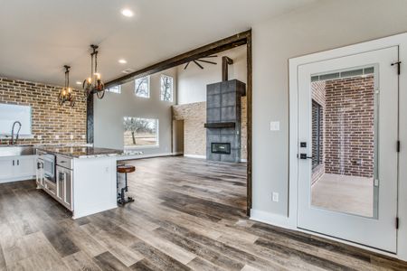 This modern lake house located on Lake Bridgeport was a pure delight to design and build. From the custom iron awning over the entryway to the unique features throughout the home, this property on the lake shows personality and style. Inside the home, features were carefully selected to accentuate the owner's unique style to include antique light fixtures, a faux concrete fireplace and interior brick walls which bring a touch of industriousness.